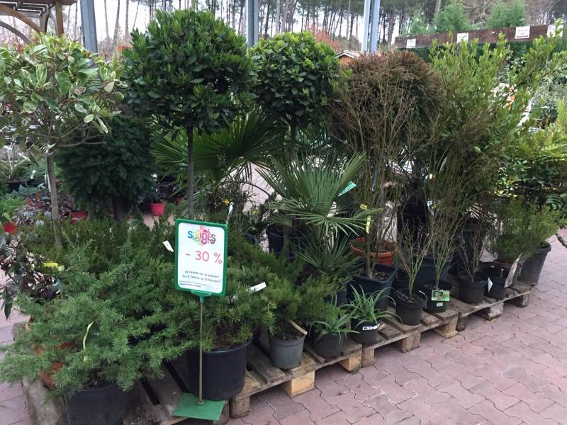 A la Jardinerie Delbard Le Porge, vous trouverez de nombreuses plantes en soldes. Des plantes d'intérieur, des plantes d'extérieur, des palmiers, des oliviers et de nombreux autres arbres d'ornement et plantes à massifs.