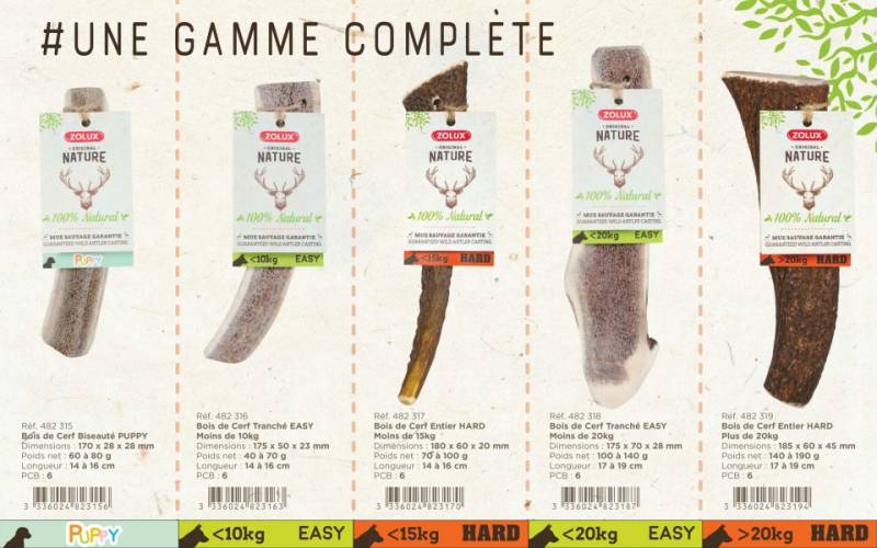 • Durabilité : les bois de cerf sont assimilés à des "os" constitués de calcium qui assure leur solidité. DLUO de 5 ans.